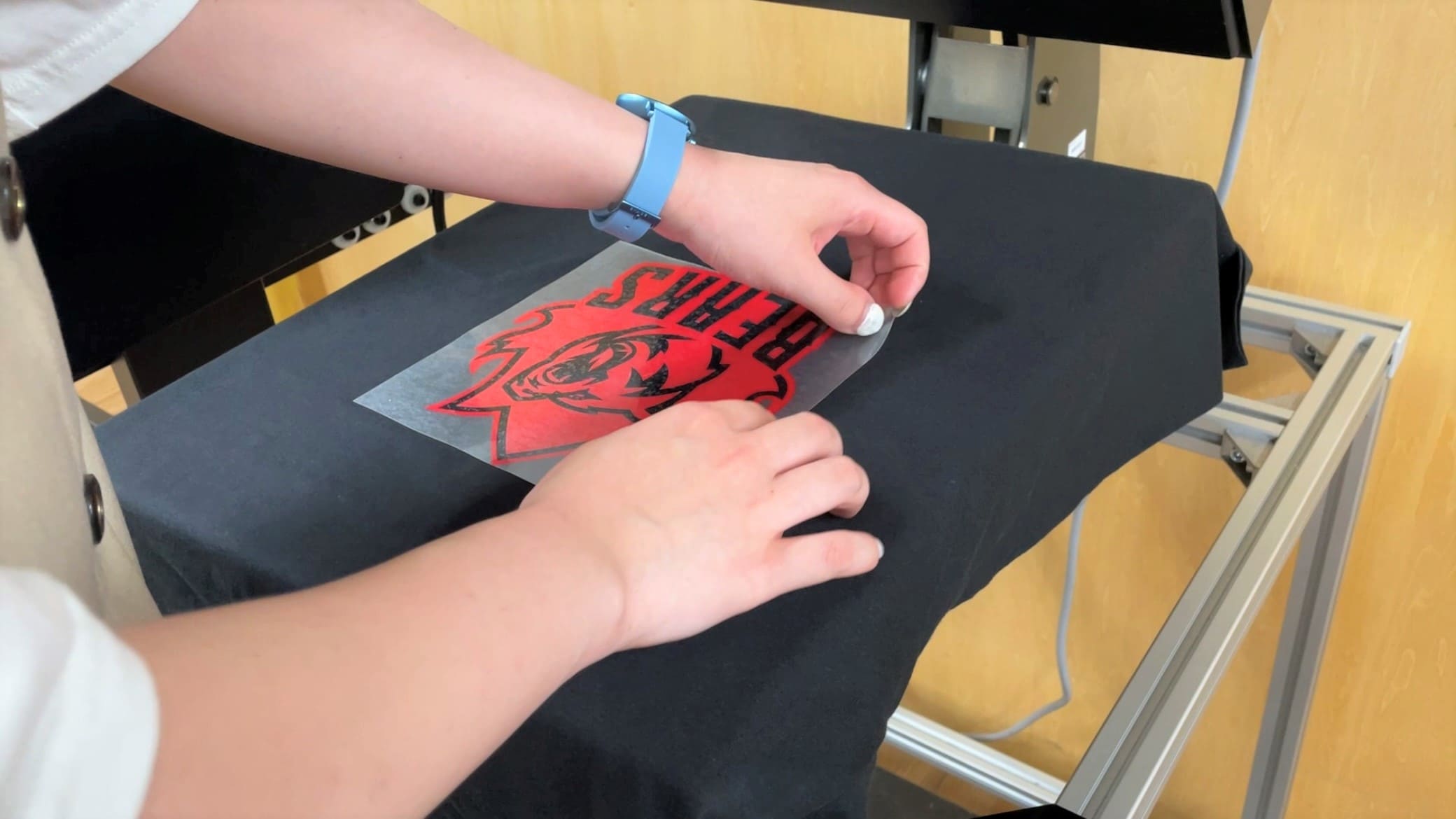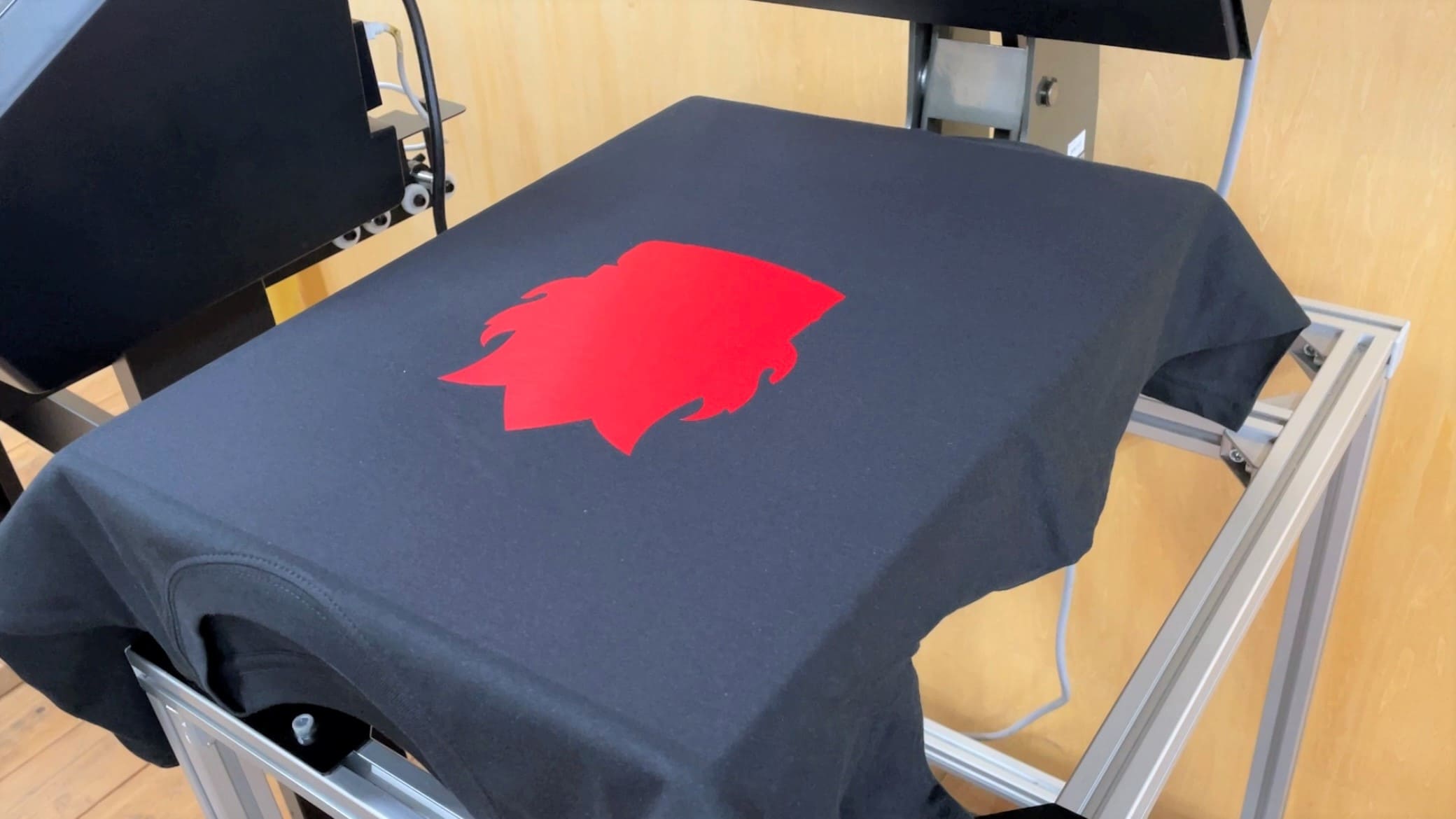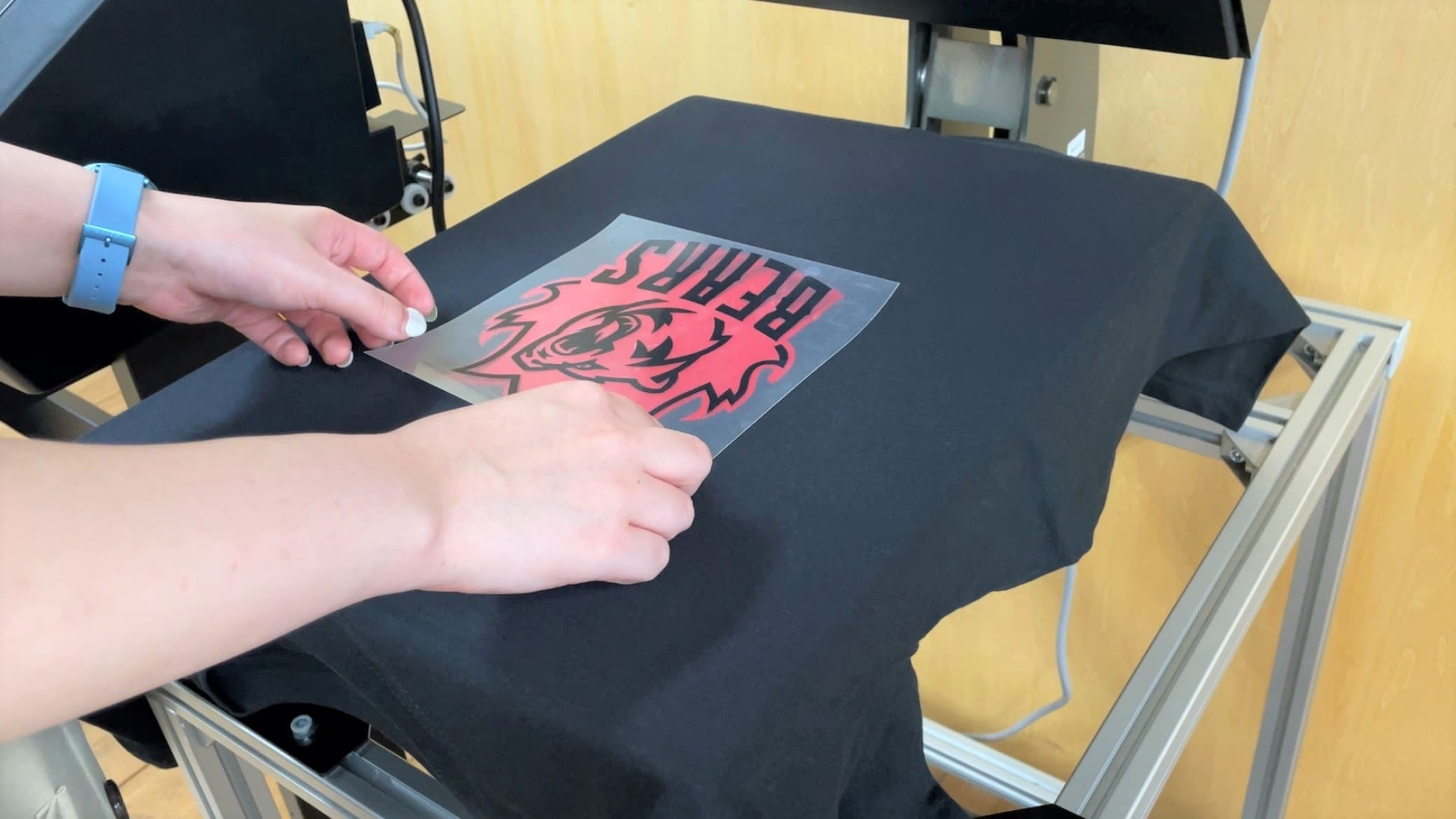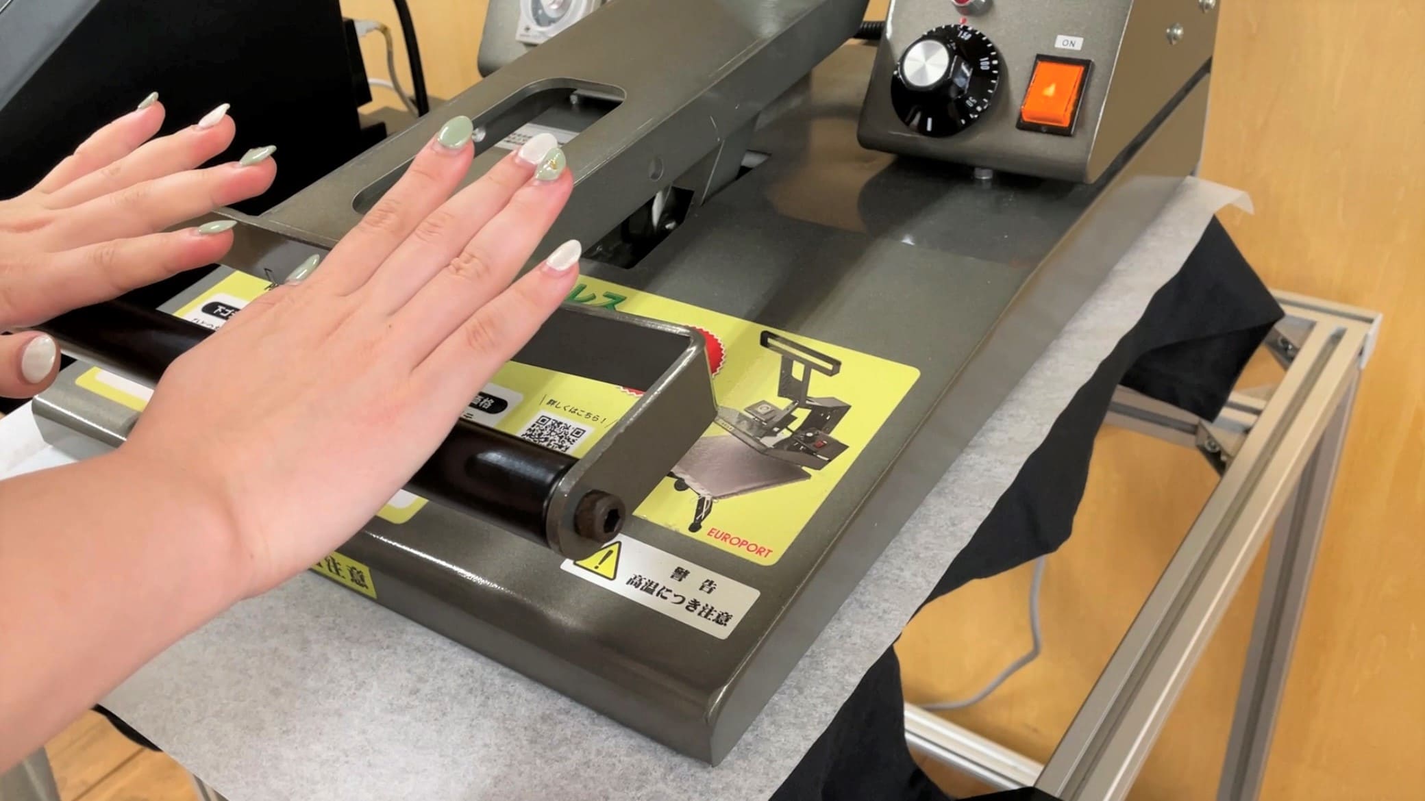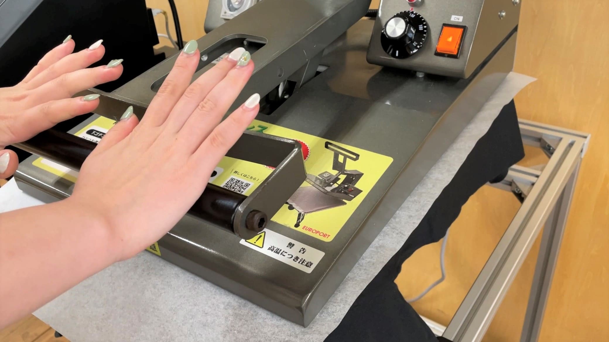 PETフィルムを剥がし、こちらも最後に仕上げプレスで生地にしっかりと圧着します。
